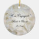 Commemorate the day that he proposed and you accepted! Celebrate your first Christmas as a newly engaged couple with the elegant White Floral Engagement Round Ornament. This classy custom we're engaged Christmas ornament features a digitally painted close up floral photograph of a white carnation flower blossom on both sides.