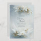 Invite your guests to a celebration of pristine luxury and timeless elegance with this exquisite wedding invitation. The design features a stunning, luminous soft cool gray-white backdrop with subtle shadow effects. A thin, elegant metallic gold rectangular frame highlights the central space. This frame is lavishly bordered at the top and bottom by intricate floral and feather accents, dominated by large, velvety white and ivory flowers and striking white feather plumes. The arrangement is accented heavily with tiny gold berries and sprigs that emphasize the opulent, high-end aesthetic, perfectly setting the stage for a classic, sophisticated, or formal wedding. This invitation card is ideally suited for a high-end formal wedding, a chic engagement celebration, or a sophisticated bridal shower. It would also perfectly suit a luxury winter or destination event or a serene, elegant vow renewal ceremony.