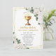 Celebrate this sacred milestone with our beautifully designed First Holy Communion invitation cards. Featuring delicate white roses, a radiant gold chalice with host, and shimmering gold accents, these elegant invitations set a reverent and graceful tone for your child's special day. Perfect for girls or boys, each card is available as a printed keepsake or a convenient instant download. Ideal for Catholic First Communion ceremonies, these customisable invitations make it easy to share all the important details with loved ones. (c) The Happy Cat Studio