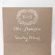 White floral frame with initials trifold wedding invitation. The elements of this wedding invitation are the white beautiful floral frame with your initials and the fonts on kraft paper style background.