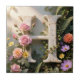 White Floral Garden Monogram Letter H Tile