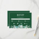 White floral garland jewels emerald green wedding RSVP card. A beautiful white floral garland adorns this wedding design with gold confetti.