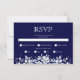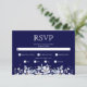 White floral garland and jewels navy blue wedding RSVP card