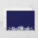 White floral garland jewels navy blue wedding RSVP card. A beautiful white floral garland adorns this wedding design with gold confetti.