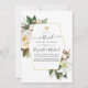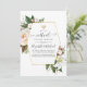 Floral online long distance virtual wedding invitation featuring watercolor blush pink peonies, wild herbs, cotton and lilies with gold geometric frame customisable to your event specifics.