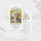 An elegant and thoughtful tribute for a loved one. Their photo is placed on the front of the prayer card in a double gold frame. In Loving Memory is placed above. Their name and life dates are placed below. Two lines of text let you personalise your tribute. The back features a gold cross nestled in white roses. You can place your loved one's favourite prayer or poem below