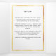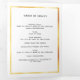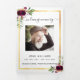 An elegant tri-fold program. A white background, a faux gold frame, burgundy florals and space for your photo. Personalise and add name, dates and your text.