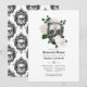 Whimsical vintage floral skull gothic wedding rehearsal dinner invitation in accents of black and white customisable to your event specifics.