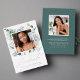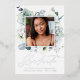 Elegant floral graduation announcements featuring your square photo framed in silver foil with watercolor white flowers, succulents, and green foliage. "Graduate" is displayed in a modern silver foil calligraphy script. Personalize the front of the white floral graduation announcement with the graduate's name, school name, and graduation year. The foil graduation announcement reverses to an additional photo with your personal message shown below. The 2 photo graduation announcement is perfect for both high school and college graduates.