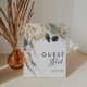 We designed this White Floral Guest Book Sign to complete your rustic dark tropical wedding. With its bohemian watercolor greenery to its modern boho winter flowers, including protea, dahlia, and dried lotus, the design is sure to set off your moody, minimalist green and white theme. Change the text and add a photo to make it your own. Also, make sure to look through the rest of the collection to find coordinating items that will bring your whole wedding together! https://www.zazzle.com/collections/white_floral_collection-119896729923706651