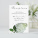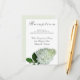 Wedding reception enclosure card with big white hydrangea flower with green leaves. Customise the vertical card in three places.