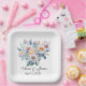 An Elegant White Floral Square Paper Plate For Rehearsal Dinner, or Wedding Shower