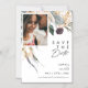 We designed this white floral save the date magnet to complete your rustic dark tropical wedding. With its bohemian watercolor greenery to its modern boho winter flowers, including protea, dahlia, and dried lotus, the design is sure to set off your moody, minimalist green and white theme. Change the text and add a photo to make it your own. Also, make sure to look through the rest of the collection to find coordinating items that will bring your whole wedding together!