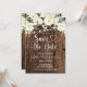 Announce your special day with timeless elegance using this gorgeous rustic white floral Save the Date wedding card! Featuring lush white roses and floral bouquet, fresh green foliage, delicate string lights, and beautiful heart script on a rich warm dark wood background. A classic and refined design perfect for spring and summer garden weddings, rustic barn ceremonies, and any romantic celebration where clean white florals steal the show!