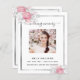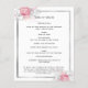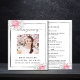 An elegant 2-page program. A white background, a faux silver frame, pink and white florals and space for a photo. Personalise and add name, dates and your text.