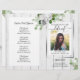 This is one of my more complex templates. Easy to use but will be a little time consuming. All text is adjustable. One photo option. Simple and elegant program for a celebration of life service. Obituary section and extra text space on the back for poem, thanks, or bible quotes. Elegant white floral borders. Faux silver foil frame.