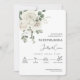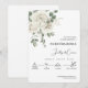 White flowers Spanish Wedding invite with timeline. Invitación de boda con secuencia de eventos