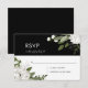 White on black, floral wedding sprigs RSVP card. Customisable. Part of a wedding collection