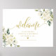 white floral welcome sign, gold welcome sign, welcome wedding sign, wedding welcome sign, printed sign, sign template, event sign, porch sign, elegant wedding sign, chic weddings, gold wedding, gold heart, calligraphy welcome sign, calligraphy wedding welcome sign