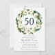White Floral Wreath Green 50th Birthday Party Invitation