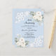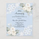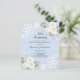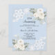 For an elegant and romantic 25th wedding anniversary. A light blue background decorated with white florals, roses and white lace. Personalise and add your names and details.