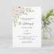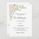 White background, decorated with white flowers, peonies and greenery. Personalise and add the name of the bride to be and party details. Black and golden coloured letters.