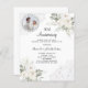 For an elegant and romantic 10th wedding anniversary. A white background decorated with white florals, roses and white lace. Personalise and add your photo, names and details.