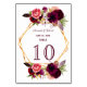 White floras geometric burgundy wedding table number