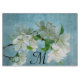 White Flower Deep Blue Sky Floral Country Monogram Initial Glass Cutting Board Personalised