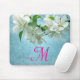 White Flower Deep Blue Sky Floral Country Monogram Initial Mouse Pad Personalised