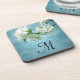 White Flower on Blue Sky Monogram Drink Coaster