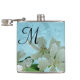 White Flower on Blue Sky Monogram Whiskey Flask