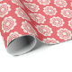 White Flower Pattern on Bright Red Background Wrapping Paper