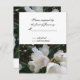Pretty soft white flowers with dark green foliage on a white background accent this RSVP reply card.