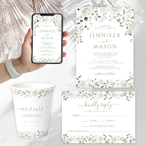 Modern and elegant “Would the Bride Rather” bridal shower game featuring lush botanical greenery leaves accented with white watercolor rose and peony flower blooms. Perfect for spring and summer bridal showers, garden-inspired celebrations, hen parties, and floral-themed wedding events, this stylish printable game adds a fun and sophisticated touch to your bridal shower activities and decor.