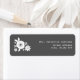 An address label featuring white flowers at left over a grey background. Look for matching wedding invitations and postage at Jill's Paperie. Personalise the text with your name and address.