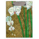 White Flowers and Green Stems on Brown Border Clipboard