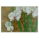 White Flowers and Green Stems on Brown Border Cutting Board