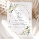 Invite friends and family in style and set the tone for your special day with this charming baby shower invitation. Design features white watercolor flowers, greenery and gold frame on white background.