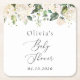 White Flowers, Cream Flowers, Boho, Baby Shower Square Paper Coaster