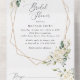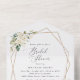 Invite friends and family in style and set the tone for your special day with this charming bridal shower invitation. Design features white watercolor flowers, greenery and gold frame on white background.