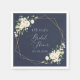 Add a personal touch to your bridal shower celebration with these stylish and memorable party items! Design features white watercolor flowers, greenery and gold frame on navy blue background.