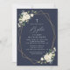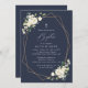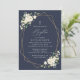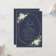Invite friends and family in style and set the tone for your special day with this elegant baptism invitation. Design features white watercolor flowers, greenery and gold frame on navy blue background.