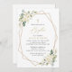 Invite friends and family in style and set the tone for your special day with this elegant baptism invitation. Design features white watercolor flowers, greenery and gold frame on white background.