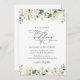 White Flowers, Cream Flowers, Greenery, Wedding Invitation