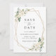 Invite friends and family in style and set the tone for your special day with this charming save the date card. Design features white watercolor flowers, greenery and gold frame on white background.