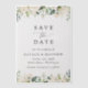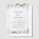Invite friends and family in style and set the tone for your special day with this charming save the date card. Design features white watercolor flowers and greenery.