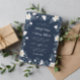 White Flowers Dark Blue Floral Wedding Invitation