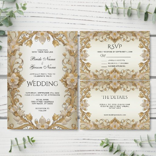 Beautiful White Flowers Decorative Gold Invitation Belly Band