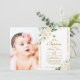 White Flowers & Gold Frame Photo Girl Baptism Invitation